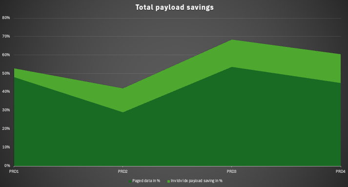 It depends on each system, the workload and the distinct values of the column of the unique indexes. But as average we observed 11% savings in the payload.